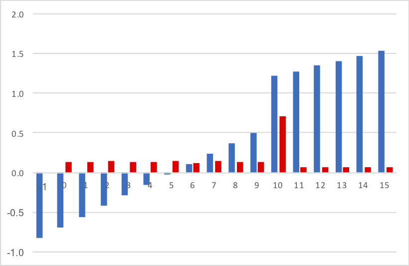 The graph below shows the results of today’s post. The X-Axis shows the 2019 salary cap dollars each team has spent on its top 51 players (no dead money is included). The Y-Axis shows the concentration index for each team for these 51 players. As you can see, the Giants (highly concentrated) are at the top of the chart, the Bills are at the bottom, the Browns are at the far right (lots of $$ spent), and the Dolphins (little $$ spent) are at the far left.