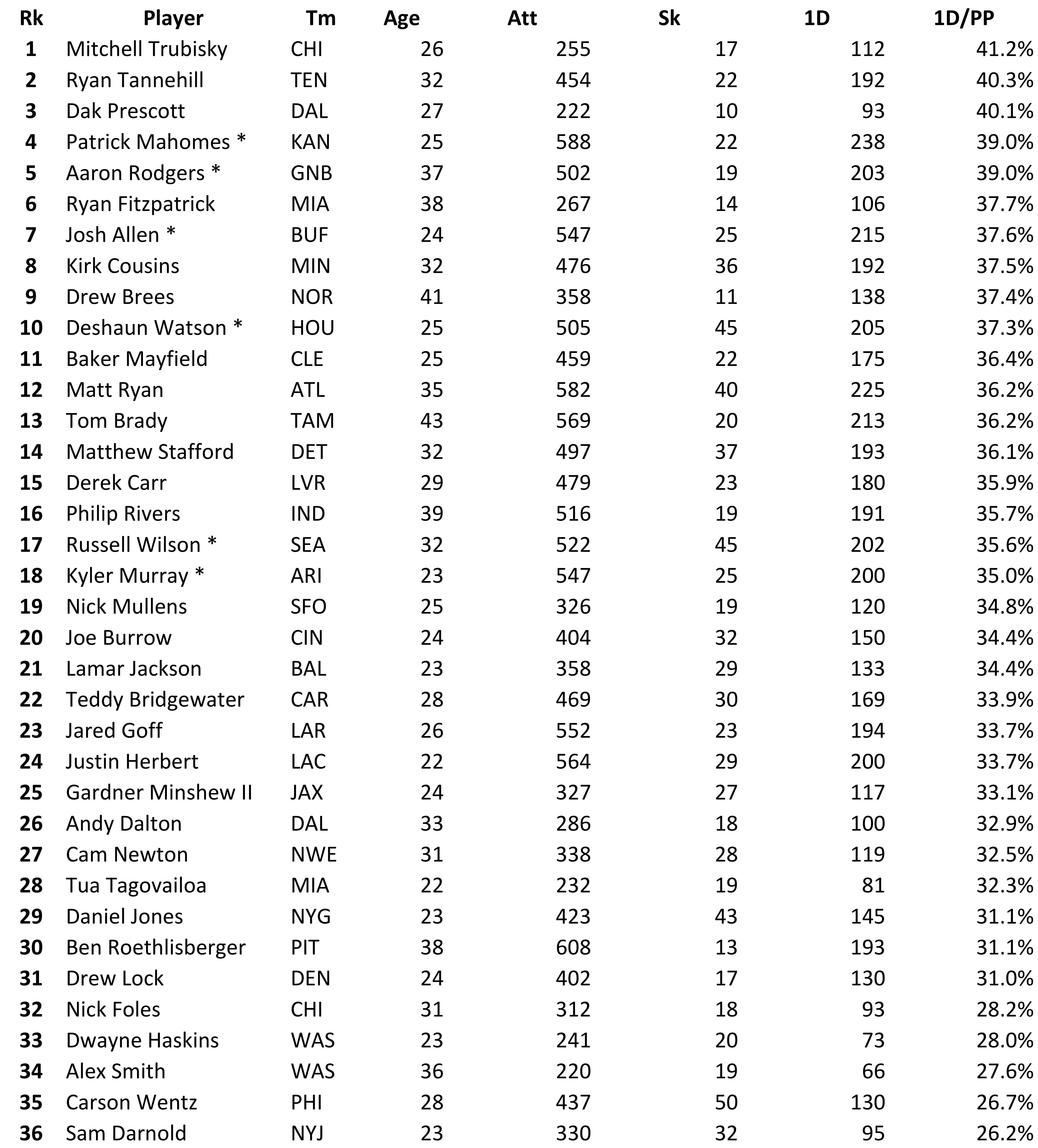 And yet, there is one area where Trubisky has not just been good, he’s been the best: the Bears fourth year quarterback is picking up first downs at the best rate in the NFL.
