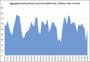 rush yds trailing 5 yr periods